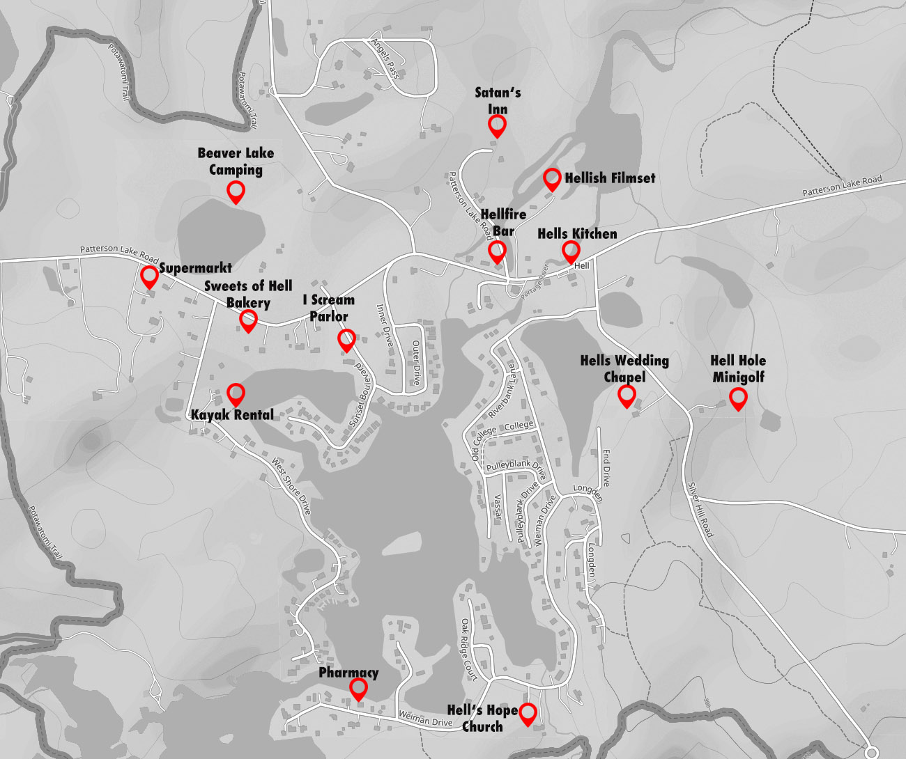 Die Kleinstadt Hell liegt im Herzen von Michigan, rund 80km entfernt von Detroit und baut sich gerade einen Namen als Halloween-Stadt auf, mit Filmsets, Gruselwanderungen, vielen Legenden und themenpassenden Restaurants & Shops.